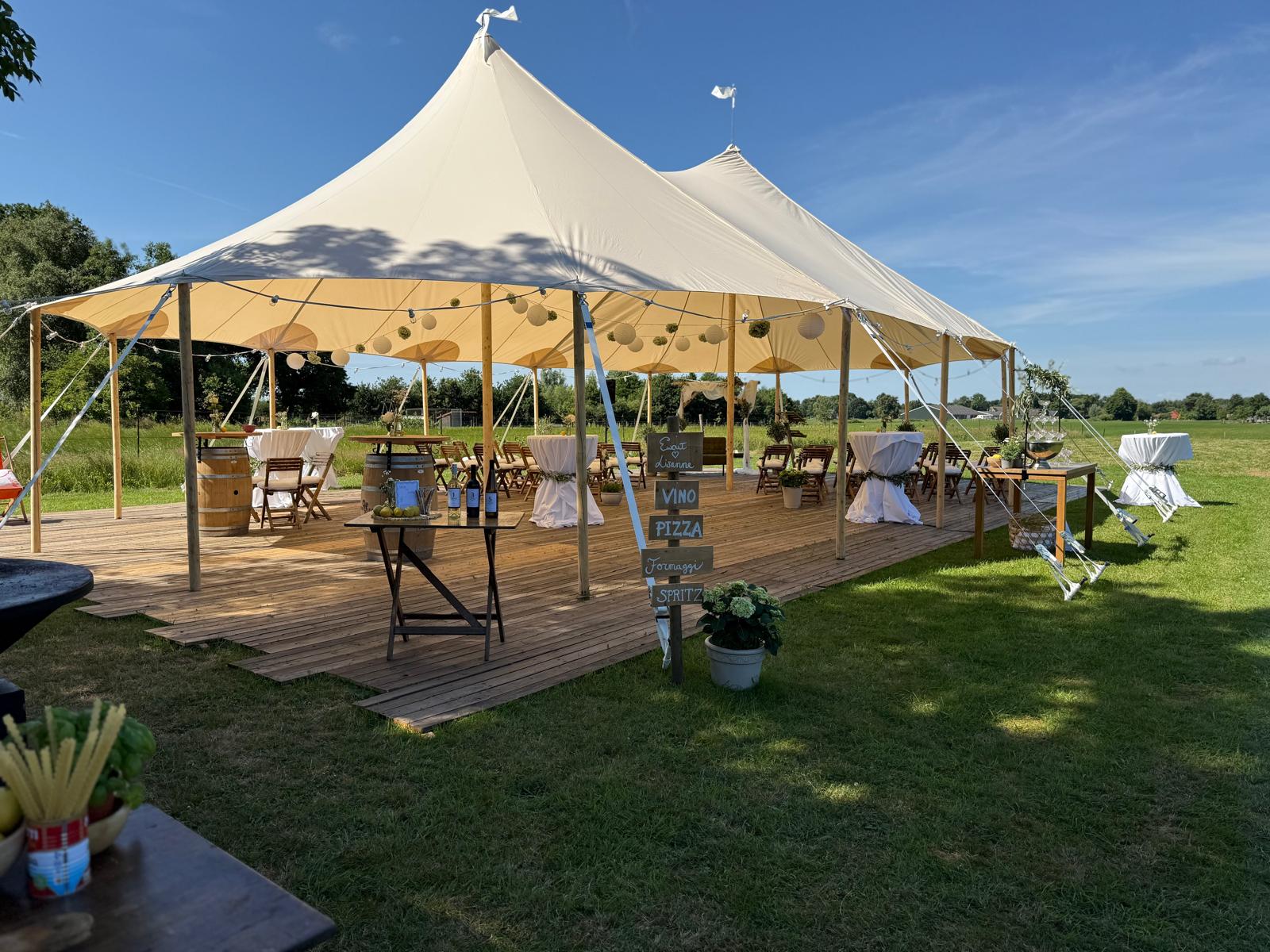 Daarnaast beschikken wij over vaste partners voor tentverhuur en hebben we zelf een ruim assortiment aan tentdoeken, verlichting, barren, stoelen, tafels en nog veel meer. Alles is aanwezig om van jullie dag een onvergetelijke ervaring te maken.